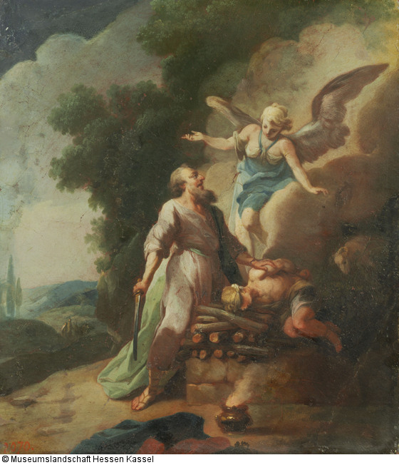 Die Erzählung der Opferung Isaaks handelt von Abrahams schwerster Prüfung, Gottes Auftrag, seinen lang erwarteten Sohn Isaak auf dem Berg Morija zu opfern. Abraham – zum Todesstoß bereit – wird im letzten Moment von einem Engel zurückgehalten (Gen 22, 9-13).