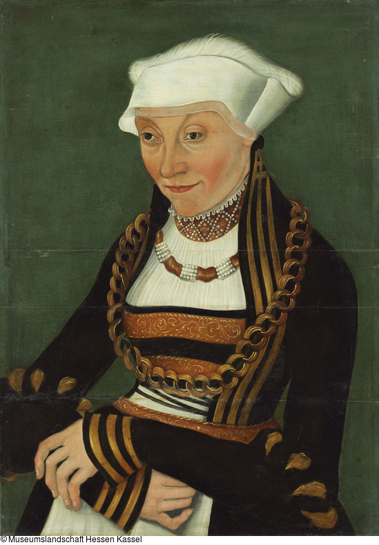 Aufgrund der dendrochronologischen Untersuchung des oberen Teils der Tafel aus Buchenholz (Dr. P. Klein, Hamburg, 1989) wurde eine Entstehung ab 1511 vorgeschlagen. Das Kostüm der Dargestellten gehört jedoch in eine etwas spätere Zeit. Eine weitere, qualitätvollere Version des Gemäldes wurde 1967 bei Sotheby's London (5. Juli 1967, lot 112) als Werk Lucas Cranachs d.Ä. versteigert (Friedländer/Rosenberg 1932, Nr. 283 d). Sandner/Burkhardt 2018 schreiben das Kasseler Gemälde Antonius Heusler zu.
