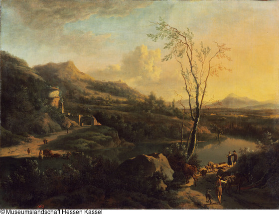 Italienische Landschaft mit Hirten und Reisenden (Staffage von Adriaen van de Velde) |